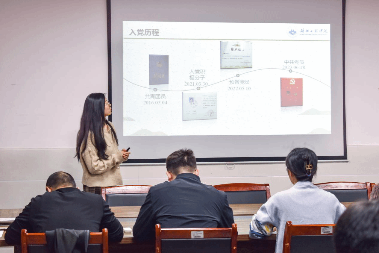 参加此次答辩的同学一共有5位。他们分别从思想方面,学习方面,科研方面,实践方面等展示他们自己在老员工活中取得的成绩。同学们的答辩赢得了全场掌声。