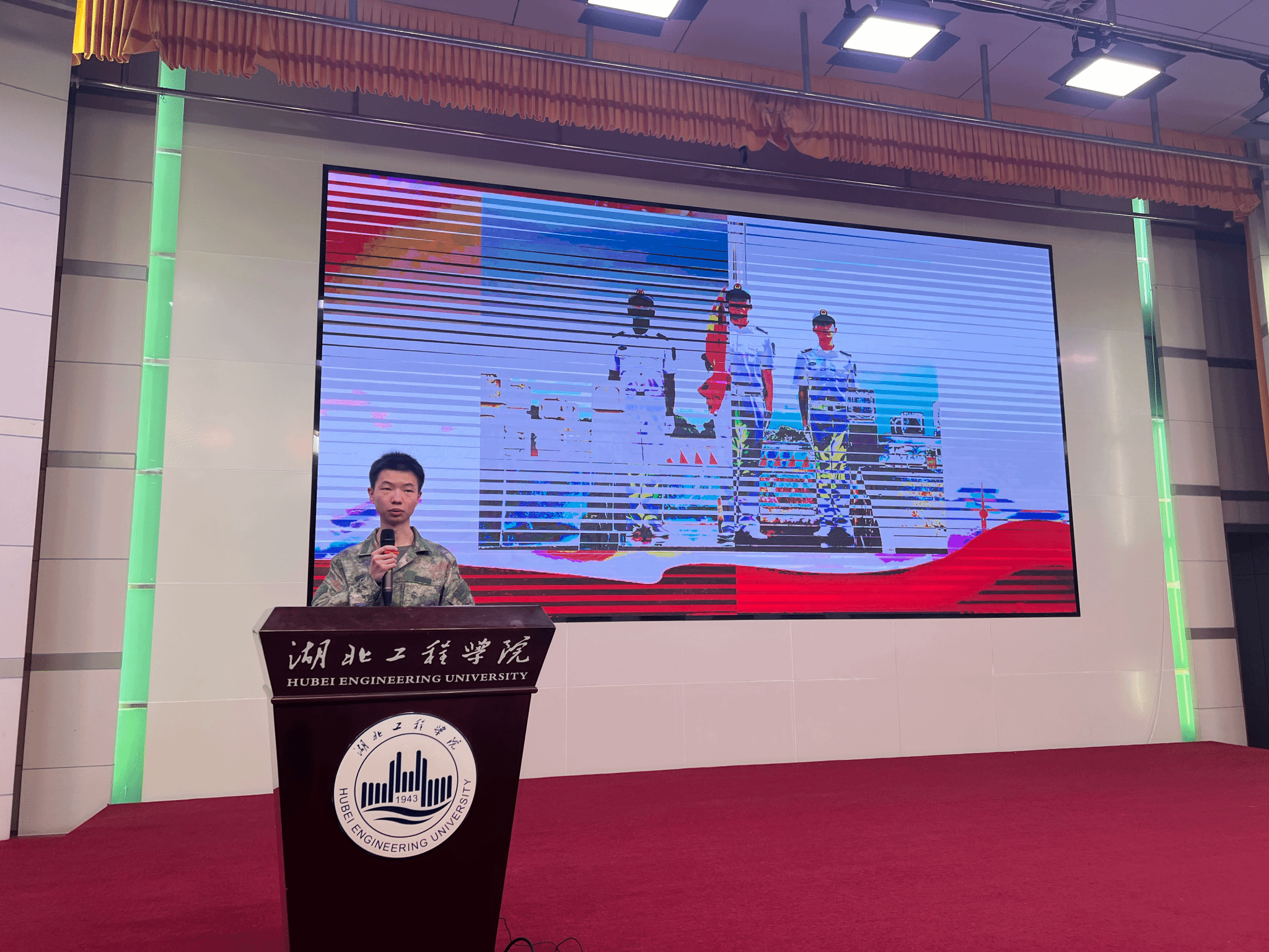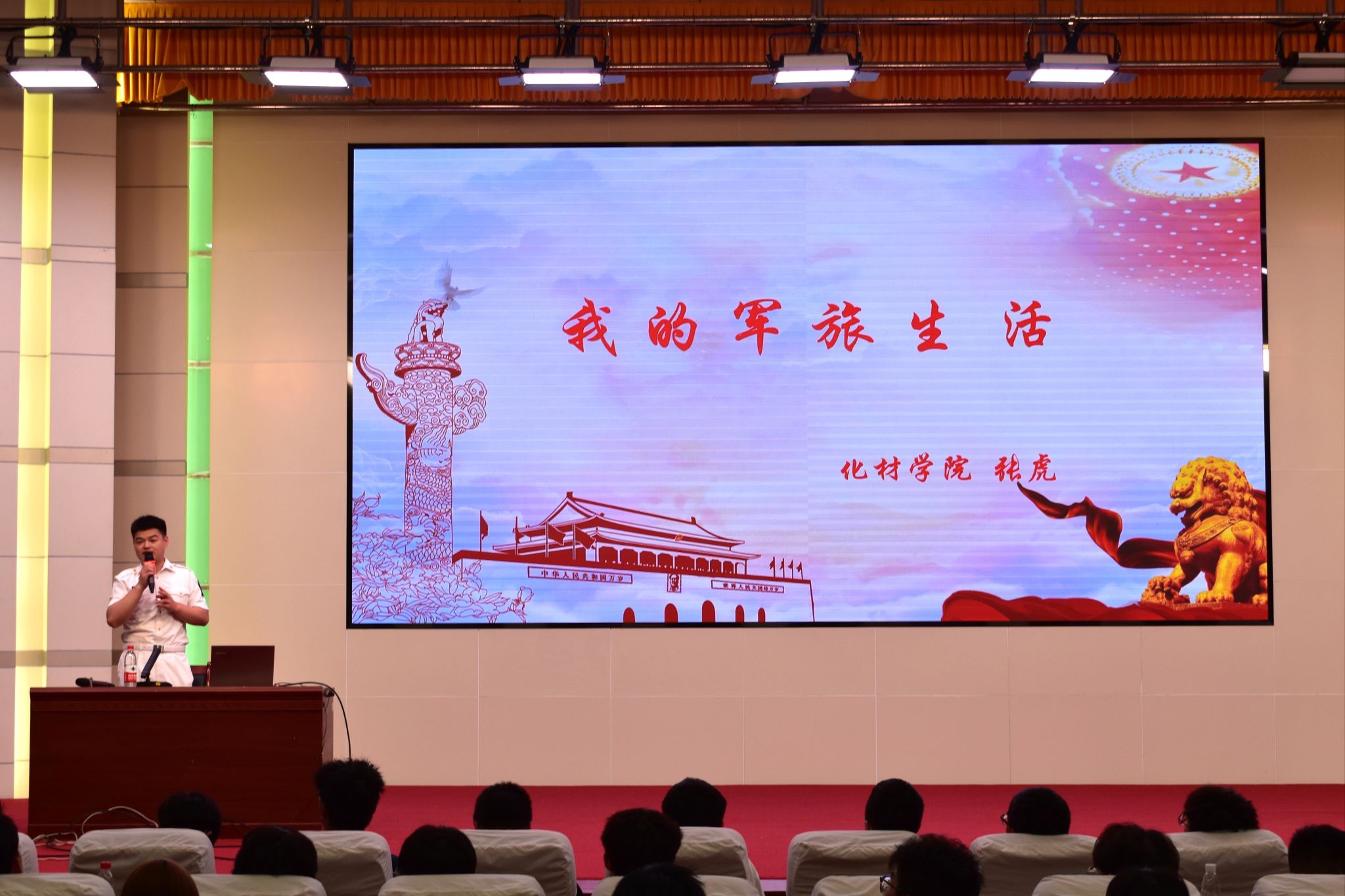 张虎同学曾服役于中国人民解放军海军航空兵部队,动员会上分享了他的从军经历,从军入伍的想法起源于2020年突如其来的新冠疫情,面对疫情的猛然来袭,中国人民解放军全军闻令而动,勇挑重任奔赴抗疫一线。在疫情防控一线,展现了新时代革命军人的担当,书写着人民子弟兵对党和人民的忠诚,当时被他们深深感动,由此更加坚定了入伍的想法,到军营去锻造自己,到军营去建功立业。
