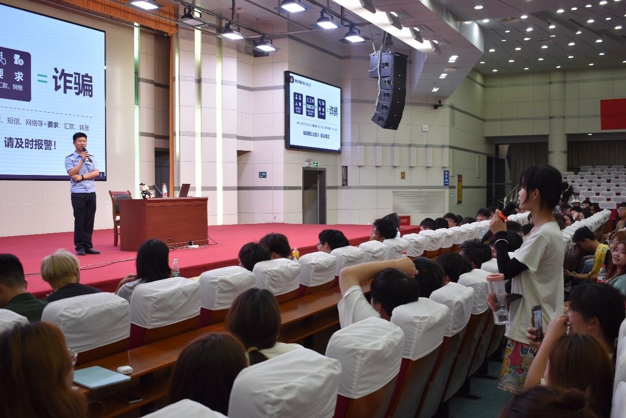 分享结束后,许多同学结合生活中常见的诈骗案例提出了自己的疑问,陈警官幽默有趣的解答,赢得一阵阵掌声。参加本次讲座的刘同学表示,“以前觉得电信网络诈骗离自己很远,听了陈警官的讲解,才知道这些骗子的花招简直让人防不胜防,听了这节课受益匪浅。”