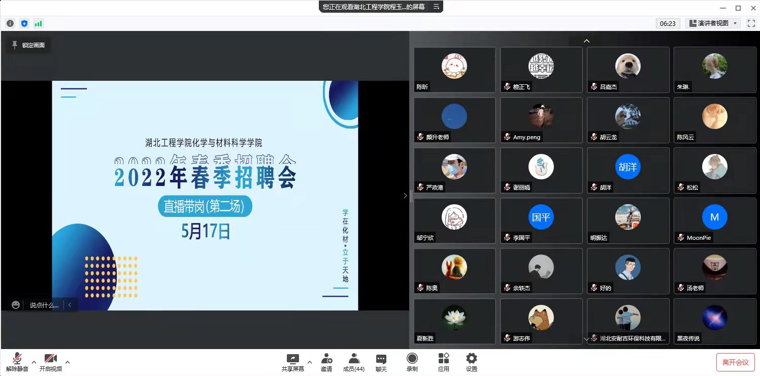 为做好2022届毕业生就业工作,熊猫体育在抓好疫情防控的同时,依托“云招聘”,千方百计拓岗位、攻坚克难促就业,开展“直播带岗”系列活动。5月17日,熊猫体育通过腾讯会议举行第二场线上招聘会·企业直播带岗,活动邀请武汉药明康德新药开发有限公司、湖北人福药用辅料股份有限公司、湖北安耐吉环保科技有限公司以及孝感鲁迅高级中学等4家知名企业参加宣讲。