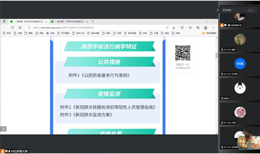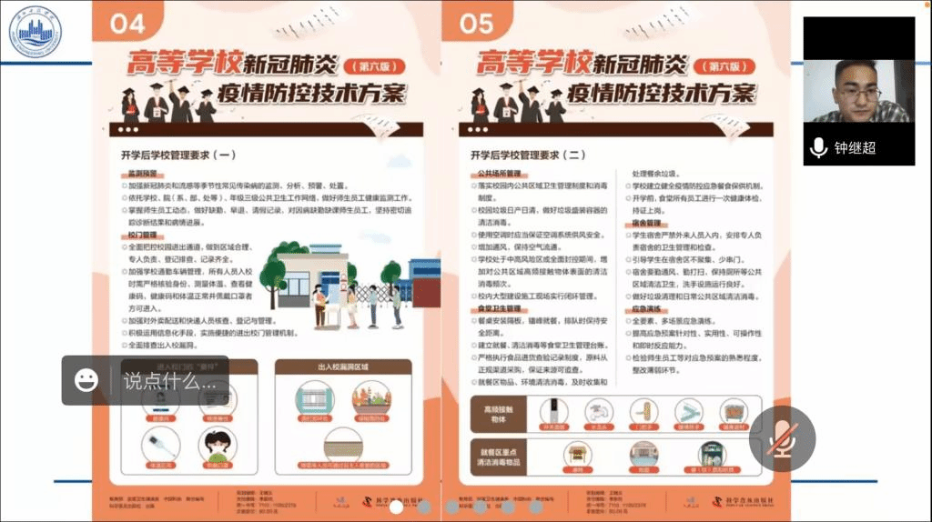 班会上,班主任带领同学们认真学习了《新型冠状病毒肺炎防控方案(第九版)》《高等公司疫情防控技术方案(第六版)》,让同学们了解了疫情监测、疫情处置、重点环节防控、组织保障等内容,同时结合公司疫情防控要求,提醒同学们勤洗手、常通风,做好宿舍消杀,外出正确佩戴口罩,错峰就餐,不堂食,按时完成核酸检测等。引导员工严格遵守校园封控管理,“非必要不出校”、“非必要不离孝”,有特殊情况需要出校的,要严格履行公司请假审批程序。同时提醒同学们在与校外快递员、外卖员接触时,做好个人防护和消杀工作。