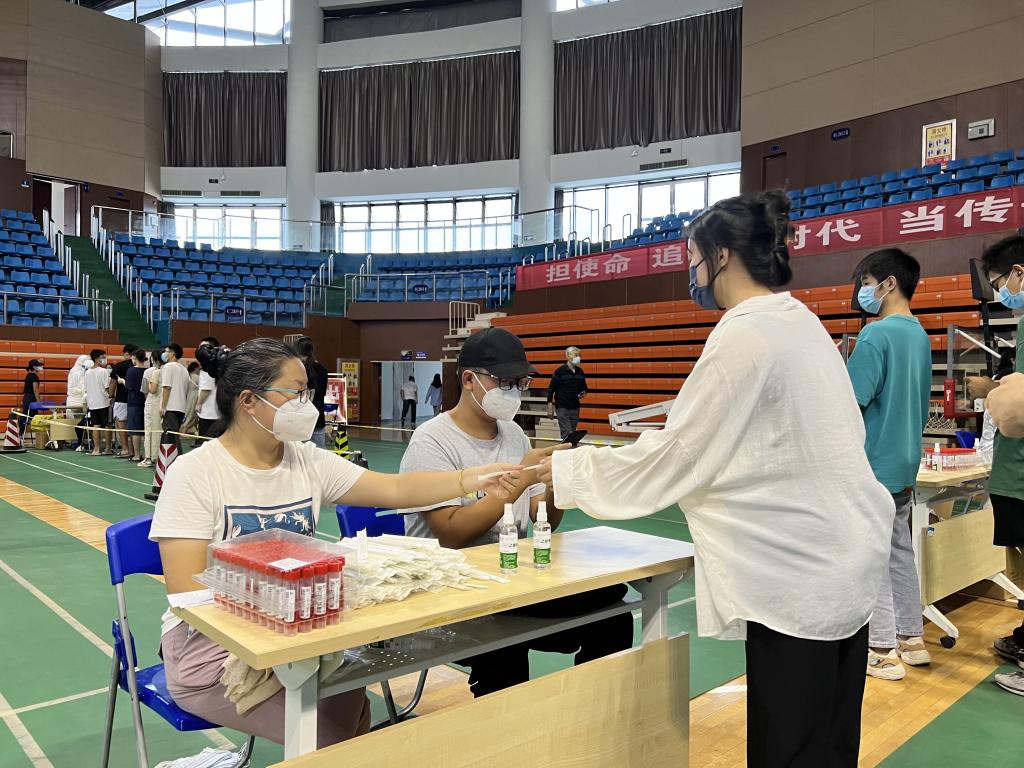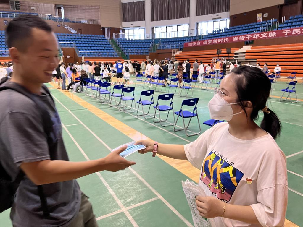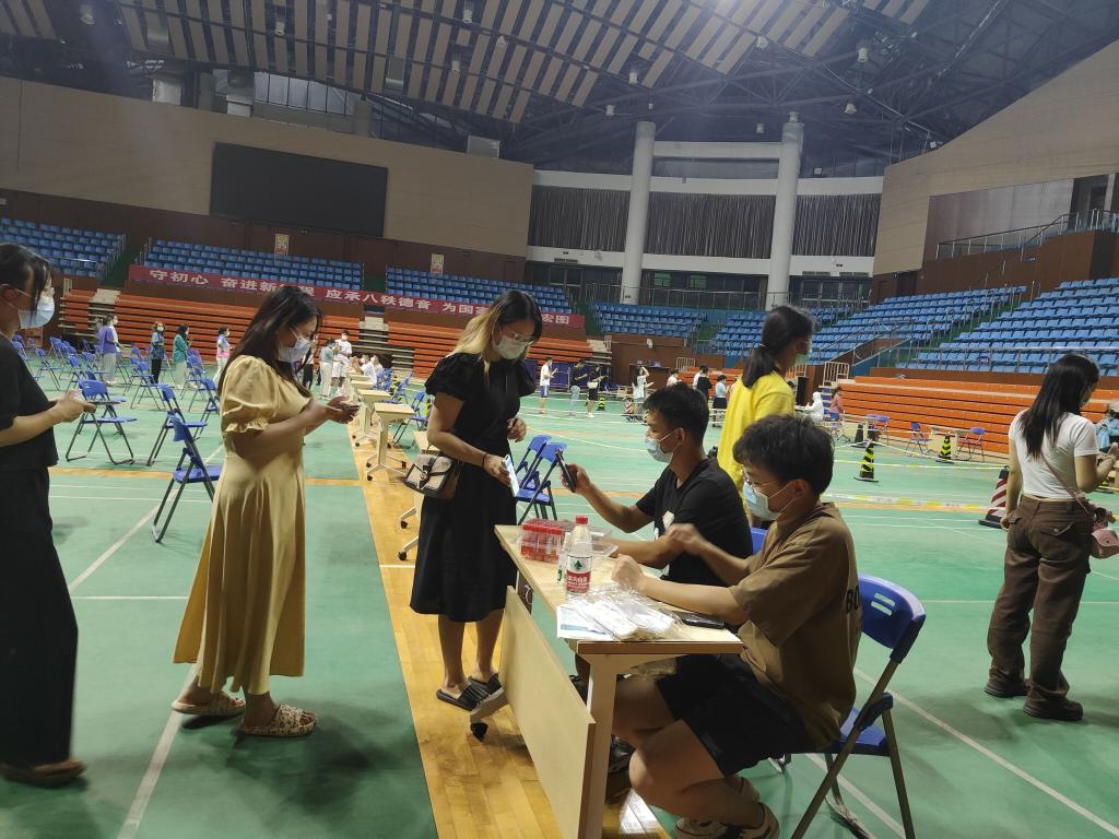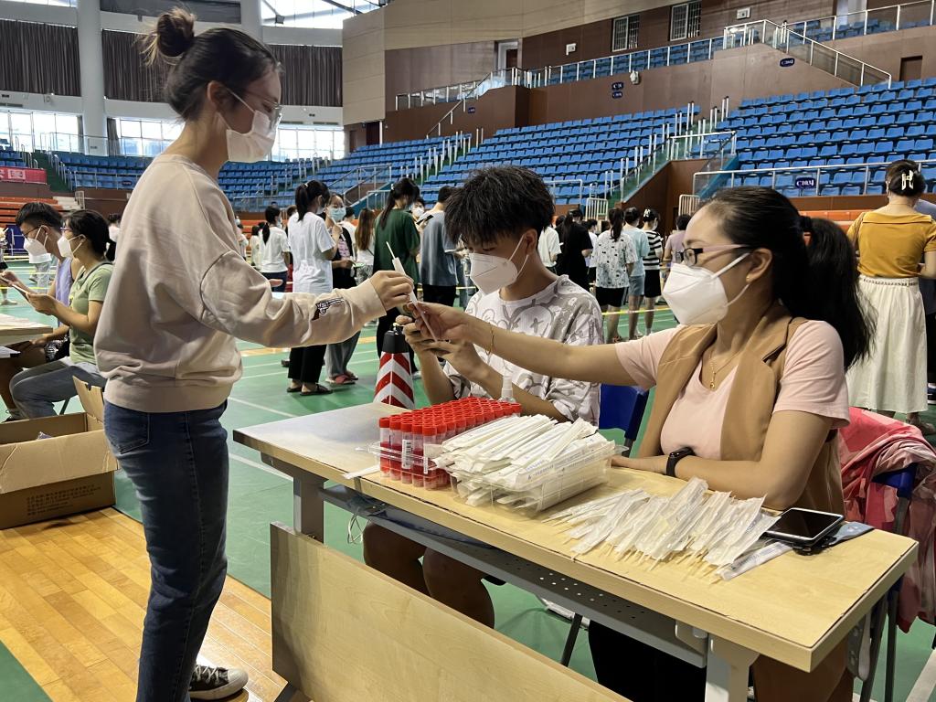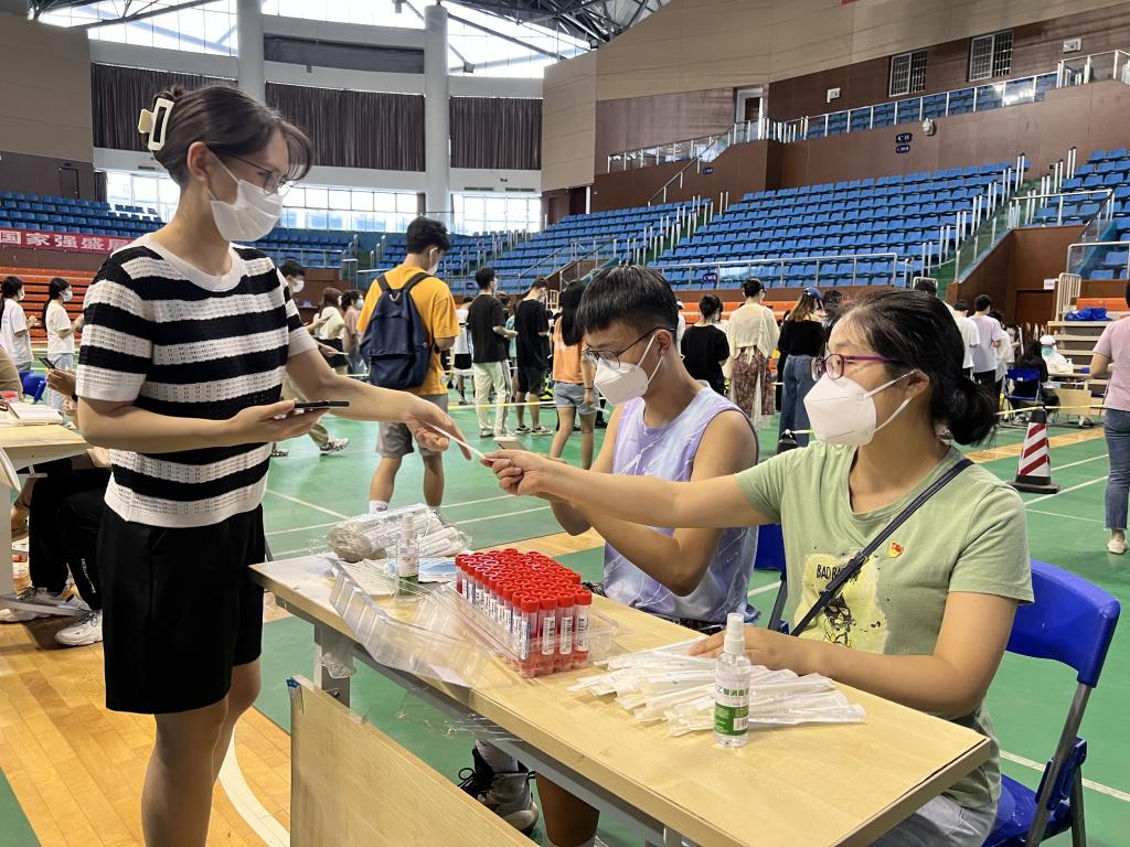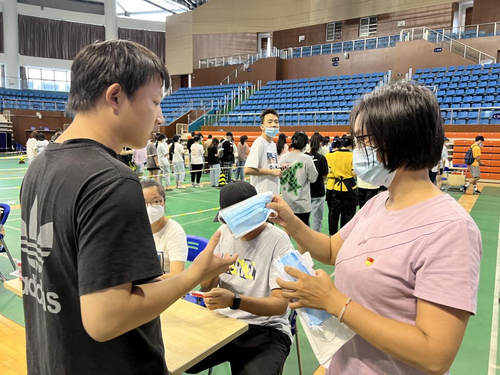 9月3日晚上,熊猫体育师生志愿者在湛林体育馆为公司核酸检测提供秩序维持、信息录入、疑难解答等工作。