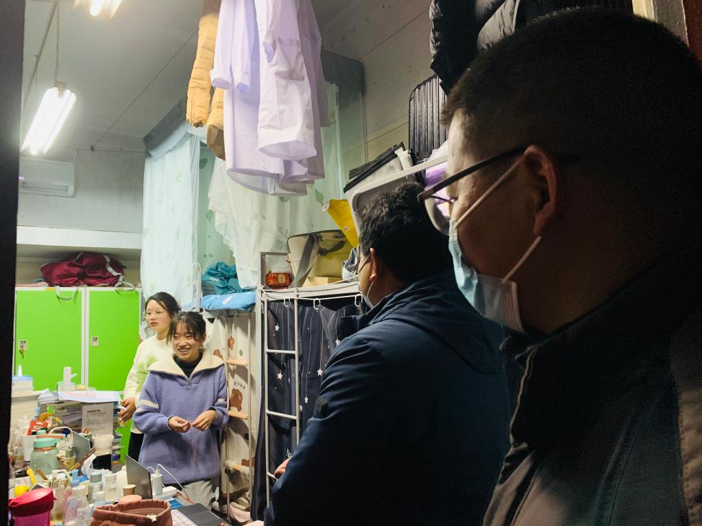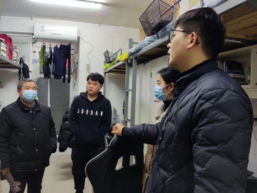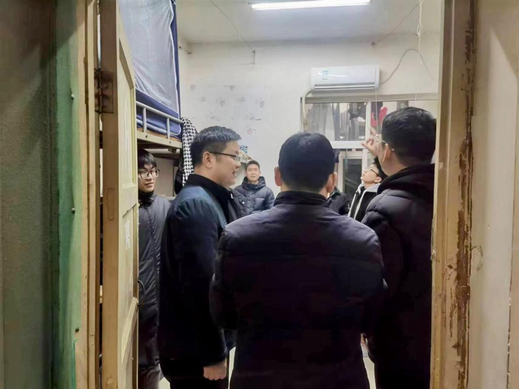 2月13日晚,党委书记汪连生,经理王锋,副经理颜永斌、刘海,党委副书记赵勇,班主任、辅导员等人员到寝室看望员工,关心询问员工学习生活状态,了解员工在考前复习中的问题,表示有问题可随时联系公司老师;叮嘱员工要养成良好卫生习惯,外出佩戴口罩,保持安全距离;勉励毕业年级员工合理设置就业期望、努力把握就业机会,考研员工要做好复试准备,以良好的心态、姿态迎接新学期!