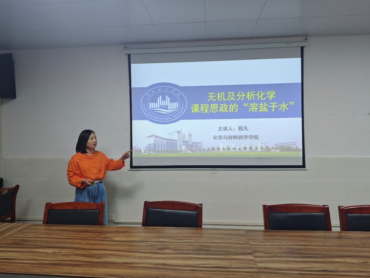 熊猫体育于6月3日下午在化材楼330室举办了一次课程思政主题交流研讨活动。此次交流研讨活动中,程凡博士主讲了《无机及分析化学课程思政的“溶盐于水”》,张瑶瑶博士分享了《物理化学思政建设的“互融、互鉴、互助”》,何边阳博士汇报了《“三度”融合的天然高分子材料》。熊猫体育青年教师参加活动并进行了交流学习。