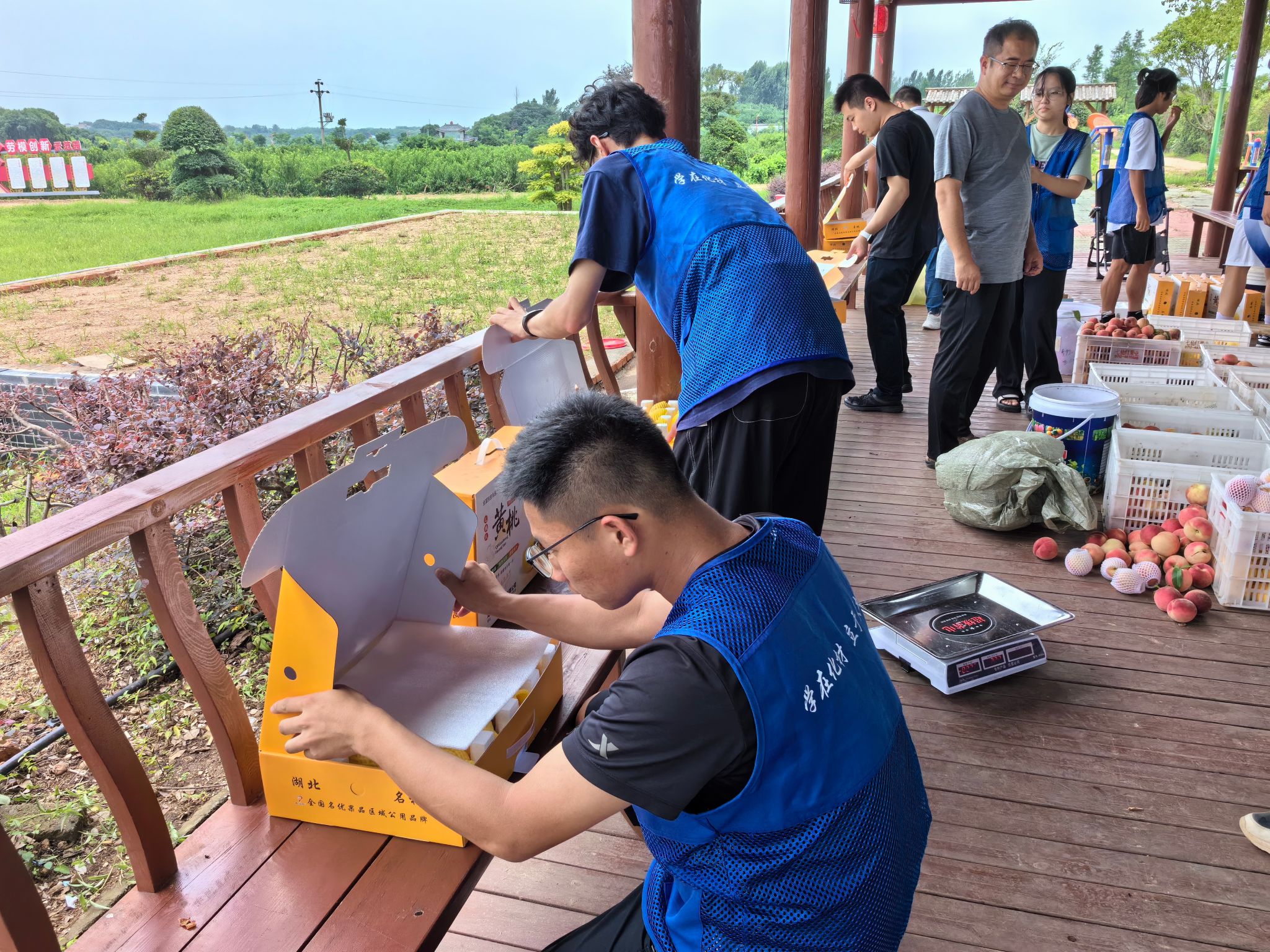 在丰山镇七仙红桃产业园这里,来自熊猫体育的学子正有条不紊地帮助桃农们进行桃子的采摘和装箱。前期,在得知七仙红桃产业园处于销售旺季忙不过来的情况后,主动请缨组建助农小分队,希望能到产业园做点力所能及的事,公司党委副书记赵勇及时联系了七仙红桃产业园,带领助农小分队到田间地头开展劳动实践,贡献湖工学子力量。