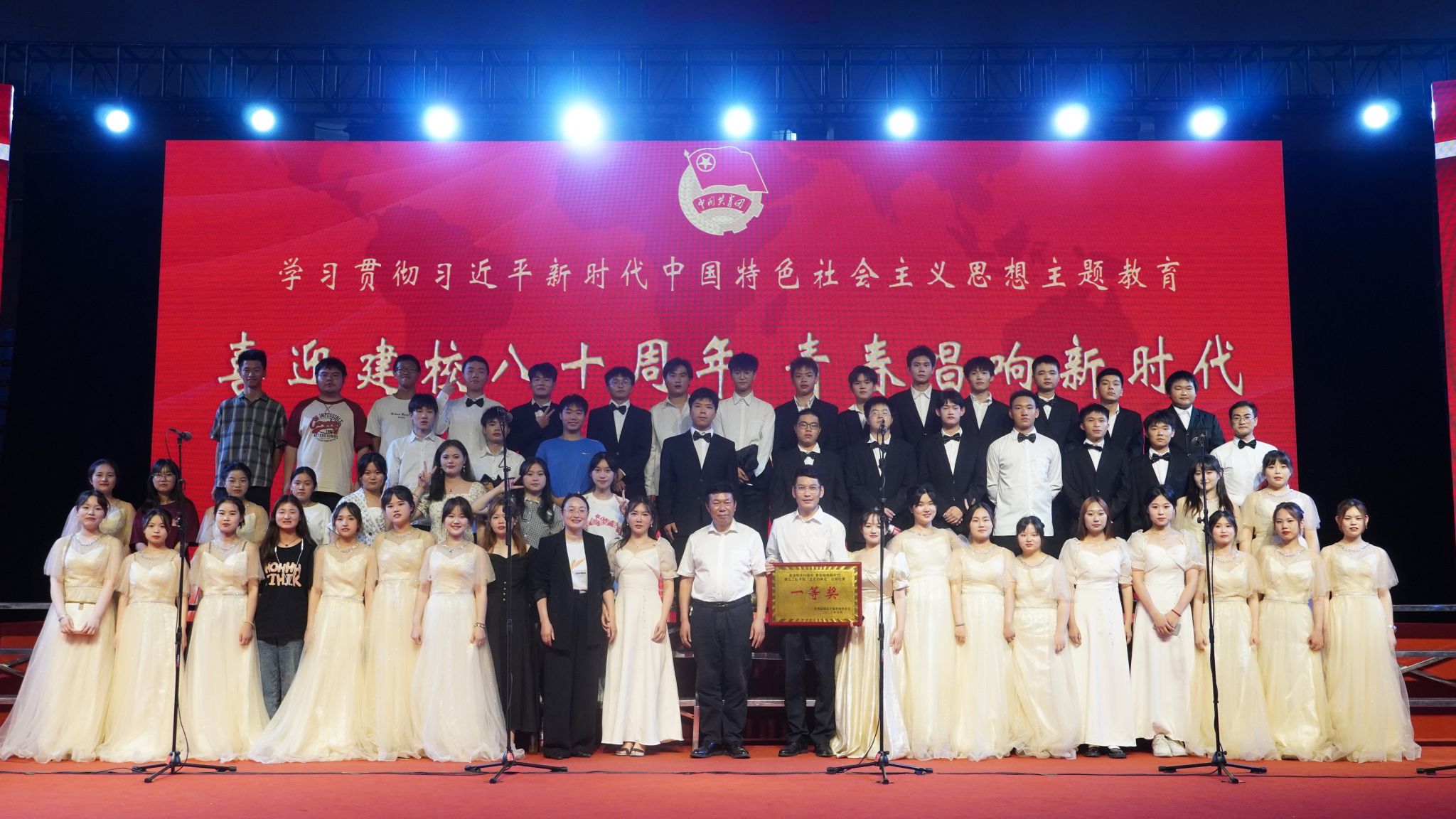 5月28日,为深入学习贯彻习近平新时代中国特色社会主义思想,喜迎八十周年校庆,青春唱响新时代——“五月的鲜花“合唱比赛在湛林体育馆举行。公司师生合唱团演唱的《青年友谊圆舞曲》《黄河船夫曲》,获得第一名的优异成绩。